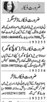 Media Sector jobs advertisement dated about 20 March 2025 in daily Dunya Newspaper invites application for the vacant post of model, actor and singer in Lahore, lahore Punjab Pakistan. Candidates with Middle, Intermediate and Matric etc. educational background will be preferred.
