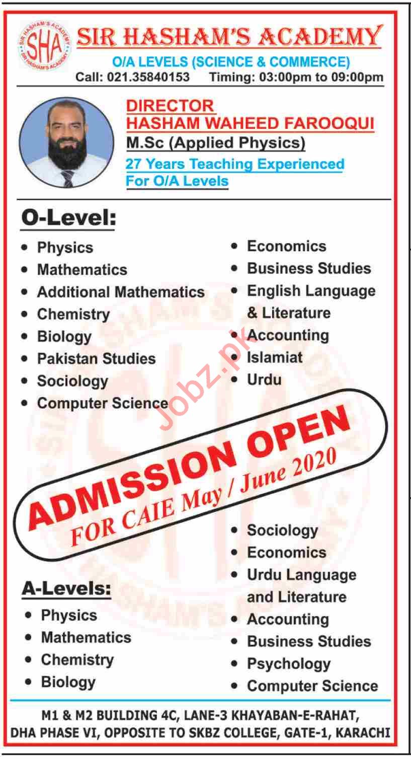 Sir Hashim Academy O A Levels Admissions 2019