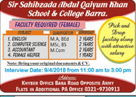 How to Apply on Sir Sahib Zada Abdul Qayyum Khan School and College Job Advertisement