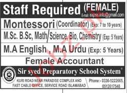 Latest Sir Syed Preparatory School System Education Posts Islamabad 2025