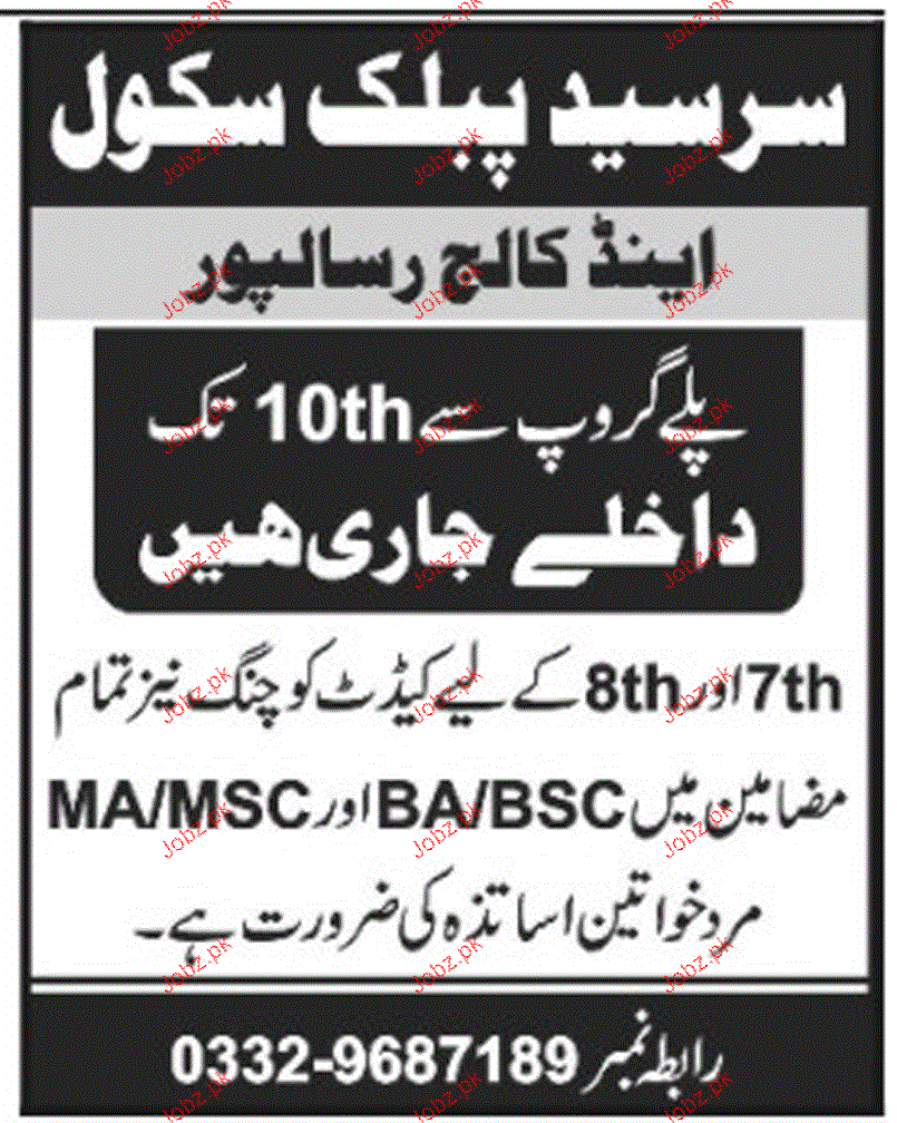 Sir Syed Public School Admission in Playgroup to X in Risalpur. Read newspaper ad for exact details.