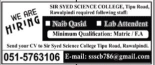 Sir Syed Science College Rawalpindi Jobs 2021