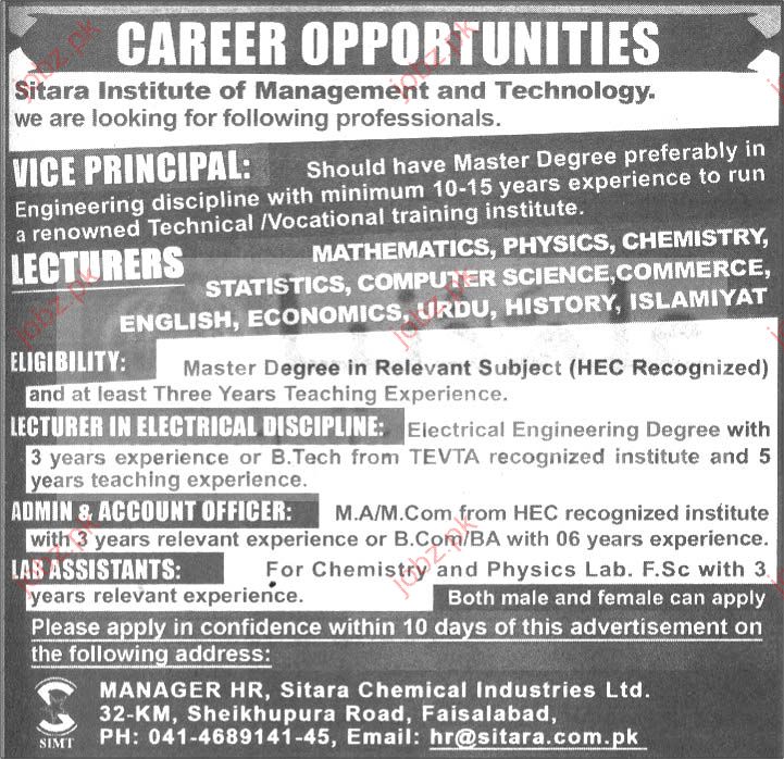 Apply as per details in job advertisement. Login to view further details of how to apply via https://www.jobz.pk online.