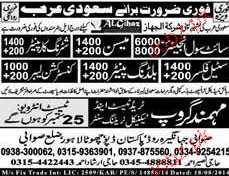 Site Civil Engineers, Mason, Shuttering Carpenters, Building Painters and Construction Labors are required in Saudi Arabia.