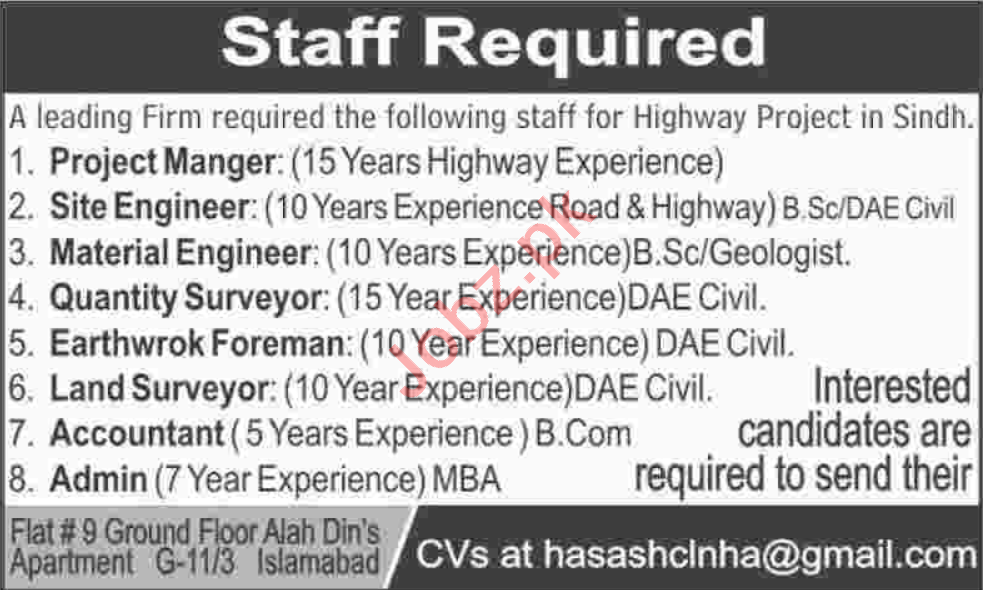 Apply as per details in job advertisement. Login to view further details of how to apply via https://www.jobz.pk online.