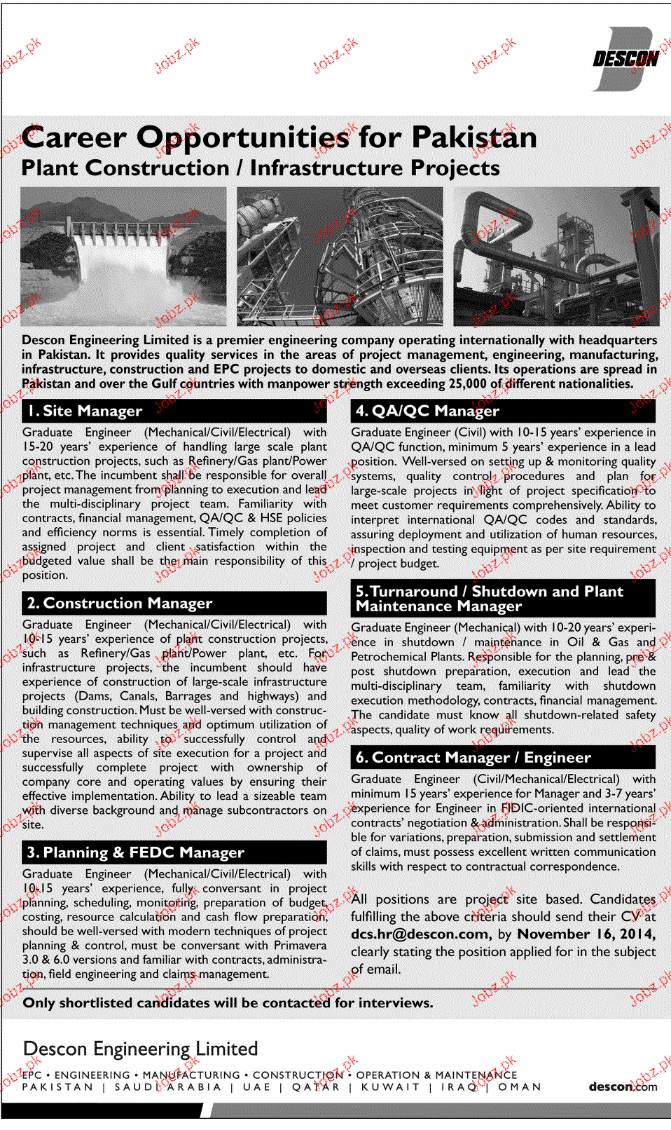Site Manager, QA / QC Manager, Contract Manager Wanted