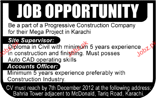 Apply as per details in job advertisement. Login to view further details of how to apply via https://www.jobz.pk online.