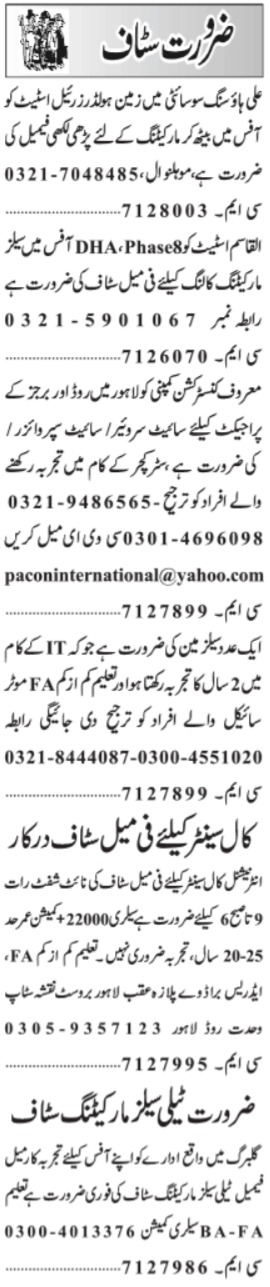 Private Company is looking for candidates for following posts as per job advertisement published in daily Jang Newspaper of January 7, 2023 for location Lahore, lahore Punjab Pakistan: