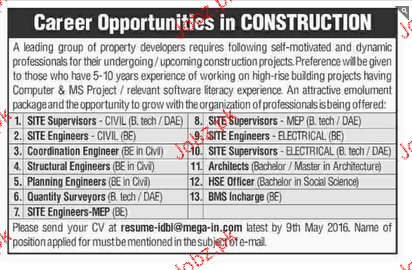 Site Supervisor, Site Engineers, Planning Engineers Wanted