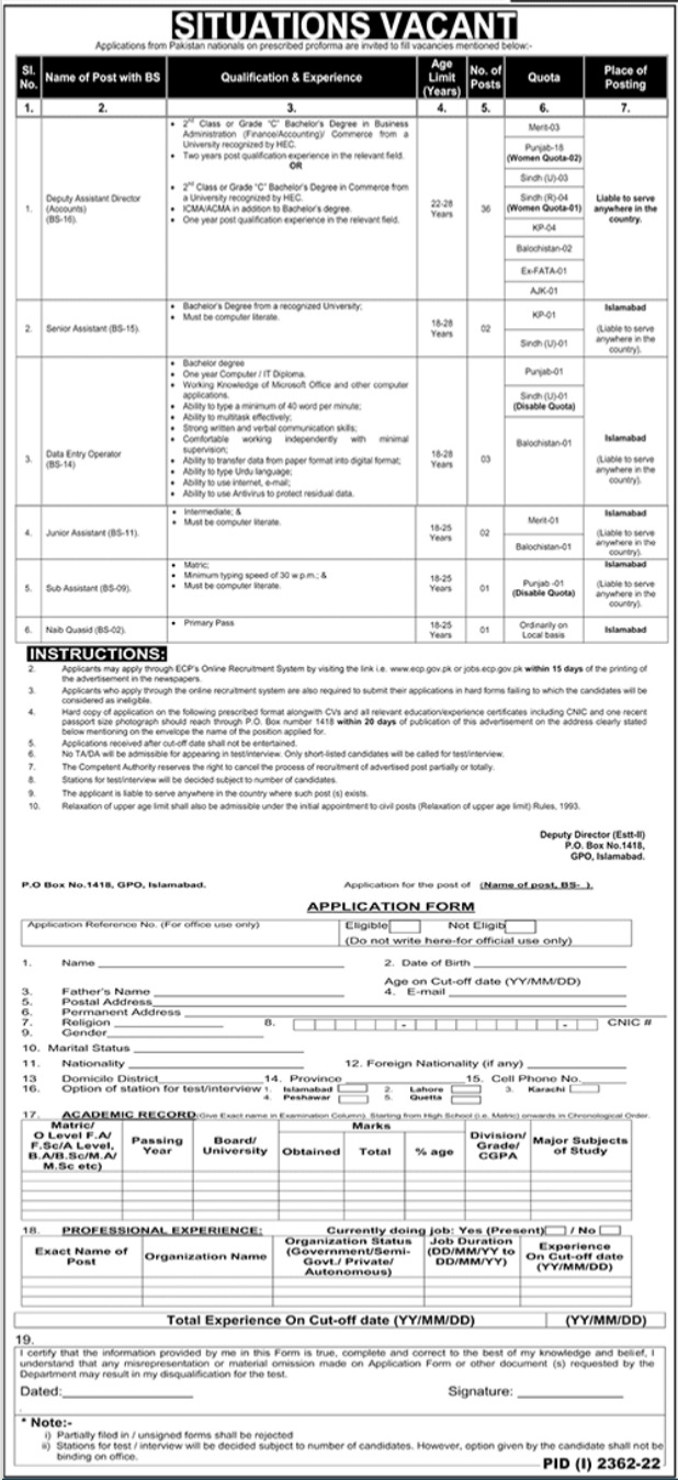 Apply as per details in job advertisement. Login to view further details of how to apply via https://www.jobz.pk online.