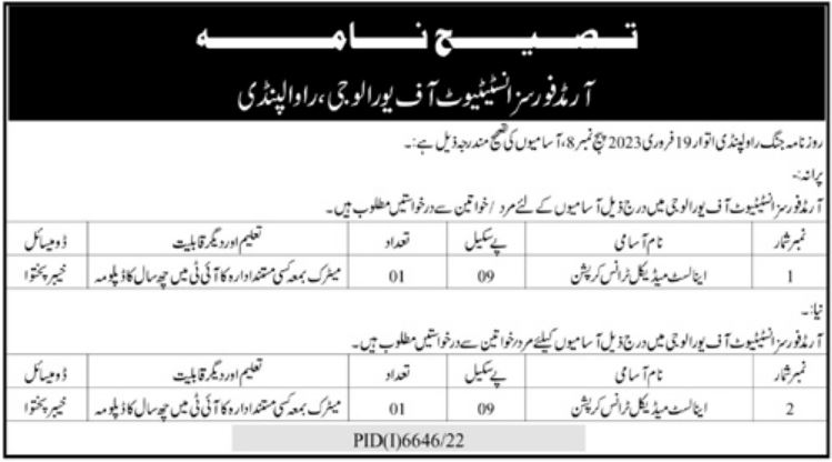Vacant posts including analyst medical transcription are announced in Armed Forces Institute of Urology AFIU Rawalpindi, rawalpindi Punjab Pakistan as per 5 May 2023 advertisement in daily Mashriq Newspaper. Persons with Matric and Others etc. education can apply.
