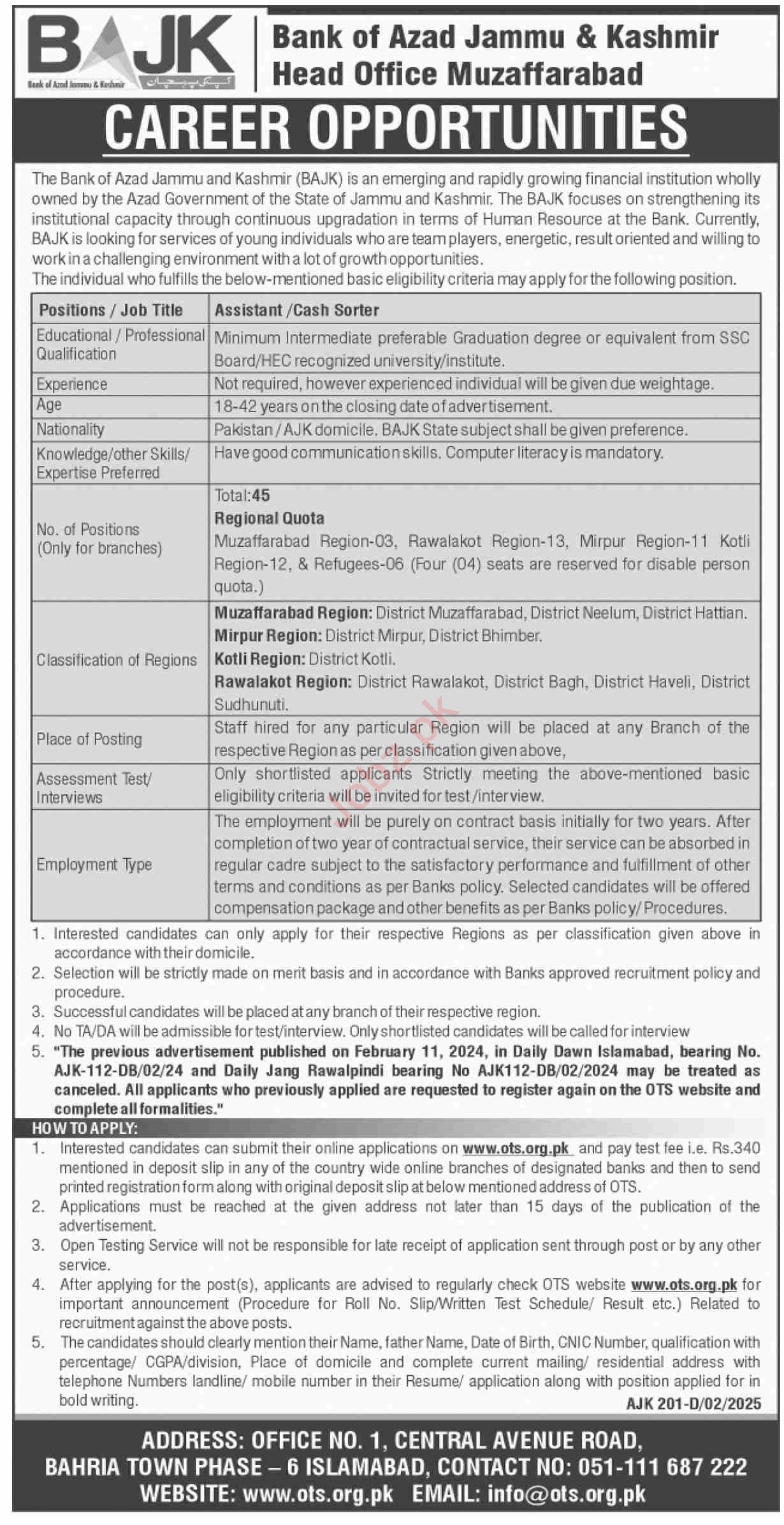 Vacancies in Bank of Azad Jammu & Kashmir Advertisement February 2025
