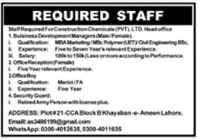 Private Company invites applications for job positions advertised in daily Khabrain dated 22 November 2025 for following vacancies in Lahore, lahore Punjab Pakistan.