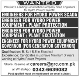 Vacant posts including engineer are announced in Ghulam Rasool & Company Pvt Limited Islamabad, islamabad Islamabad Pakistan as per 9 August 2024 advertisement in daily Jang Newspaper. Bachelor and B.E etc. educational qualification will be preferred.
