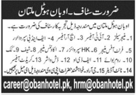 Oban Hotel jobs advertisement dated about 8 October 2023 in daily Jang Newspaper invites application for the vacant post of gro guest relations officer, fb supervisor, cook, night auditor, chef, it officer, credit officer, fdo, dish washer, room boy, manager sales, front office manager, accounts manager, hk supervisor and hr officer in Multan, multan Punjab Pakistan. Intermediate, Master, Middle and Bachelor etc. educational qualification will be preferred.