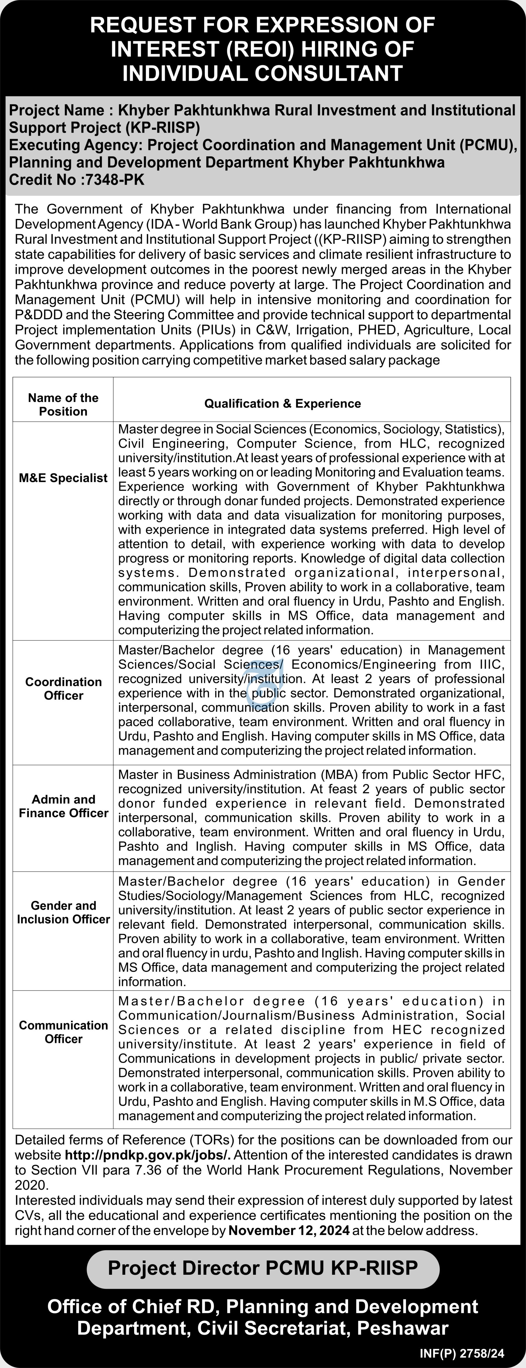 Planning and Development Department latest Government Management jobs and others can be applied till November 12, 2024 or as per closing date in newspaper ad. Read complete ad online to know how to apply on latest Planning and Development Department job opportunities.