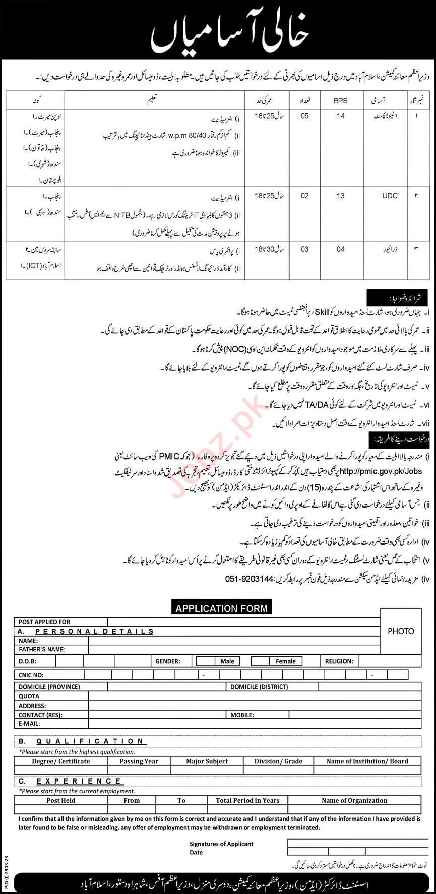 Latest Prime Ministers Inspection Commission Management Posts Islamabad 2025