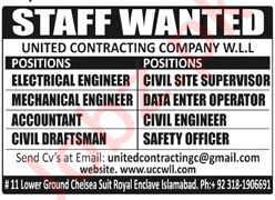 United Contracting Company invites applications for job positions advertised in daily Jang dated 2 September 2024 for following vacancies in Islamabad, islamabad Islamabad Pakistan.
