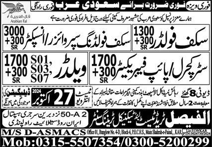 Apply at Al Faisal Trade Test & Technical Training Center latest Overseas jobs in Labor and departments before closing date which is around October 27, 2024 or as per closing date in newspaper ad. Read complete ad online to know how to apply on latest Al Faisal Trade Test & Technical Training Center job opportunities.