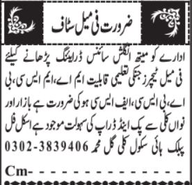 Skillful Public High School jobs advertisement dated about 28 February 2025 in daily Jang Newspaper invites application for the vacant post of science teacher, math teacher, teacher, english teacher, drawing teacher and female teacher in Nawai Killi Bhittani Quetta, quetta Balochistan Pakistan. Educational qualifications required Bachelor, Master, M.sc, Intermediate, BA and MA etc.