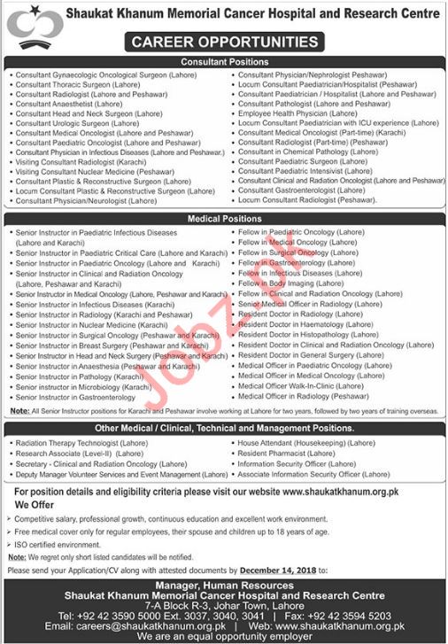 Vacancies in Shaukat Khanum Memorial Cancer Hospital & Research Centre Advertisement December 2018