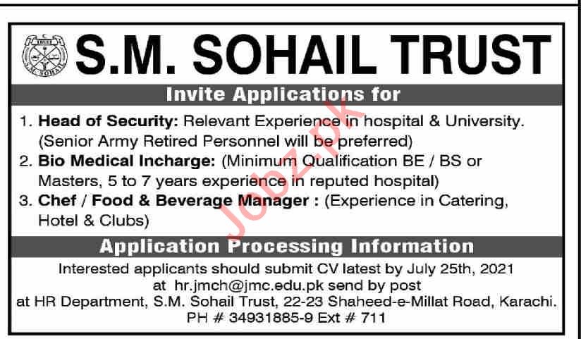 SM Sohail Trust Karachi Jobs 2021 For Head Of Security