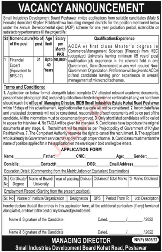 Latest Small Industries Development Board Finance Posts Peshawar 2025