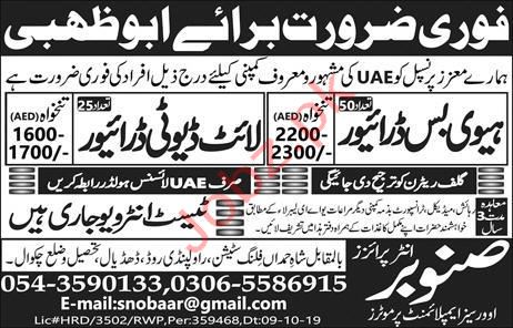 Latest Snobaar Enterprises Oversea Employment Promoters Driving Posts UAE 2025