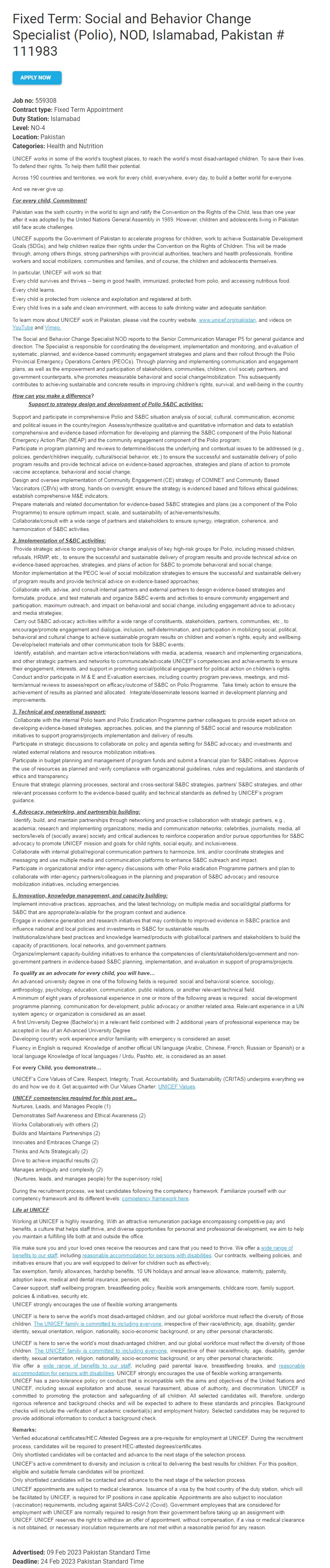 Original Source: https://jobs.unicef.org/en-us/job/559308/fixed-term-social-and-behavior-change-specialist-polio-nod-islamabad-pakistan-111983