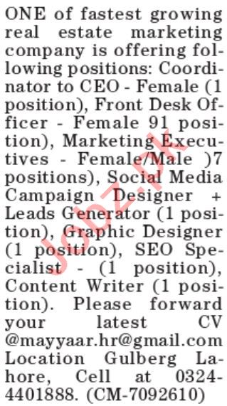 Apply as per details in job advertisement. Login to view further details of how to apply via https://www.jobz.pk online.