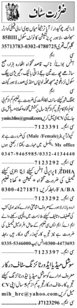 Private Company invites applications for job positions advertised in daily Jang dated 28 September 2022 for following vacancies in Lahore, lahore Punjab Pakistan.