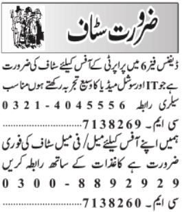 Social Media Expert & IT Expert Jobs 2023 in Lahore