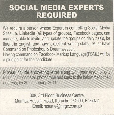 Apply as per details in job advertisement. Login to view further details of how to apply via https://www.jobz.pk online.