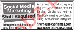 Social Media Marketing Staff Jobs 2018 In Lahore