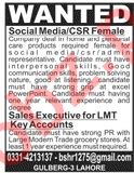 Social Media Officer, CSR & Sales Executive Jobs 2019