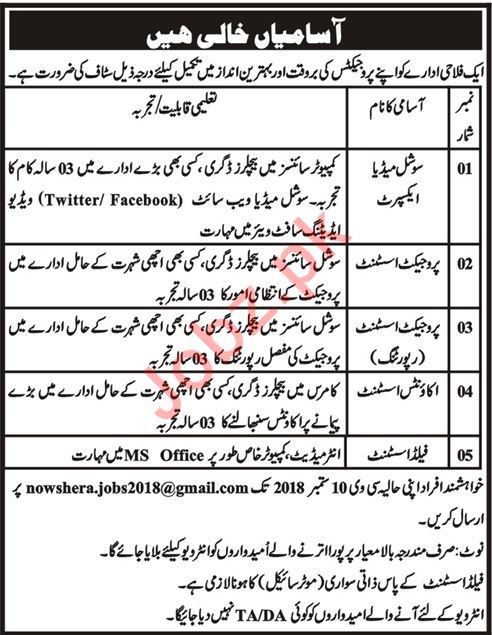 Latest Welfare Organization Accounting Posts Nowshera 2025