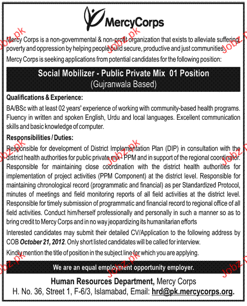 Apply as per details in job advertisement. Login to view further details of how to apply via https://www.jobz.pk online.