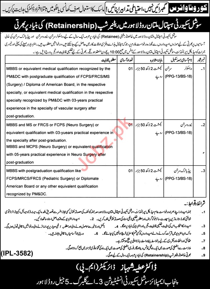 Social Security Hospital Lahore Jobs 2020 For Surgeons
