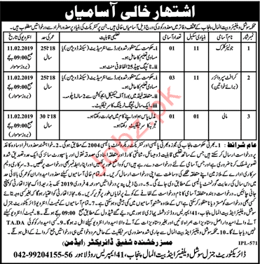 Vacancies in Social Welfare & Bait ul Maal Advertisement January 2019