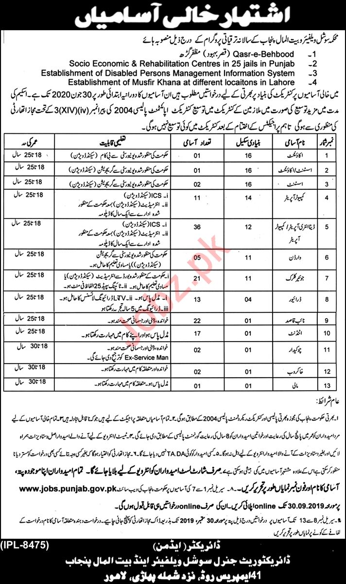 Social Welfare Bait Ul Mal Muzaffargarh Jobs 2019