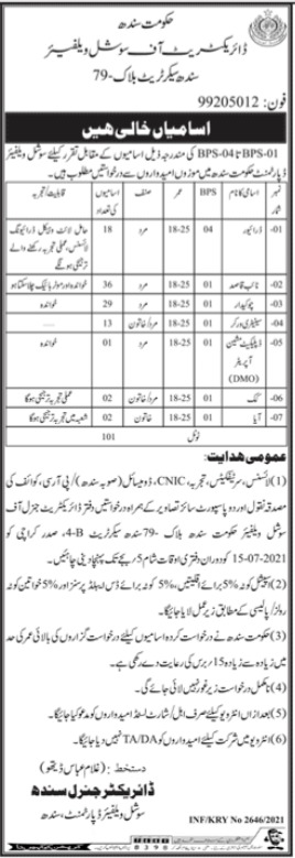 Vacancies in Social Welfare Department Advertisement June 2021