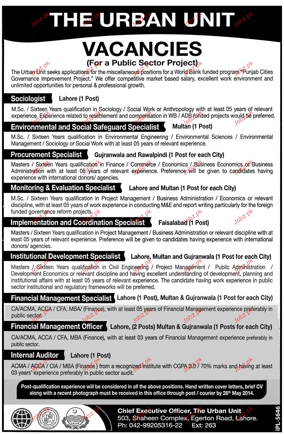 Sociologist, Procurement Specialist Job in The Urban Unit