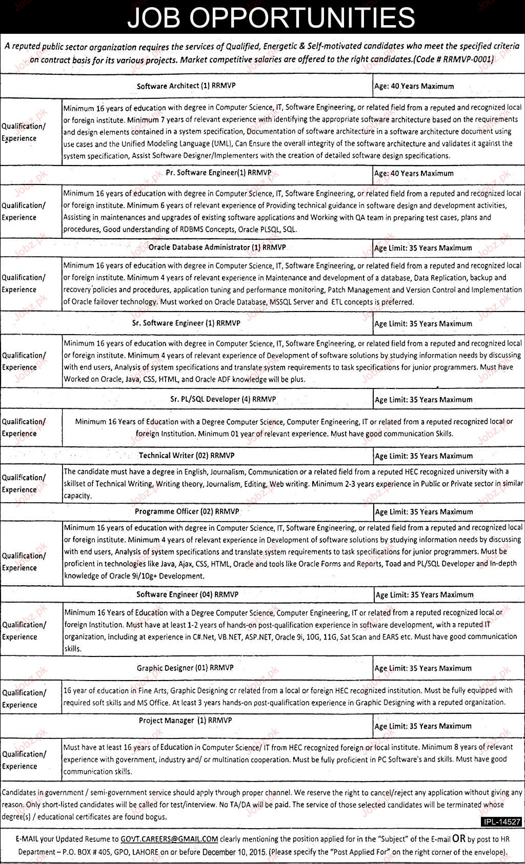 Apply as per details in job advertisement. Login to view further details of how to apply via https://www.jobz.pk online.
