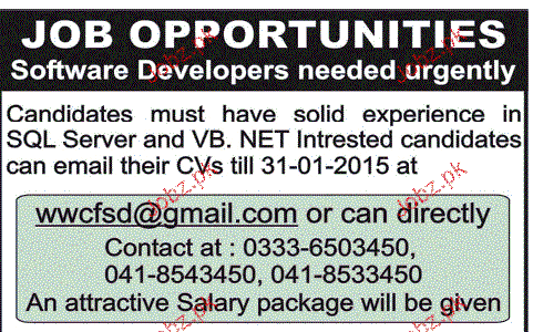 Software Developers are required in Lahore.