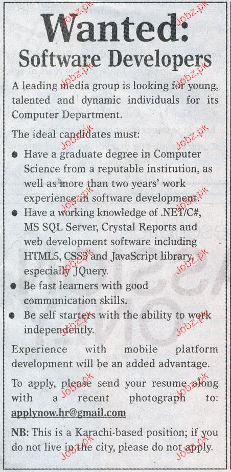 Apply as per details in job advertisement. Login to view further details of how to apply via https://www.jobz.pk online.