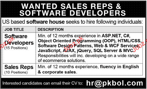 Software Engineers And Sales RepresentativesJob Opportunity