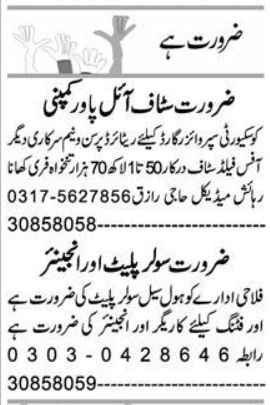 Private Company invites applications for job positions advertised in daily Express dated 21 August 2023 for following vacancies in Faisalabad, faisalabad Punjab Pakistan.