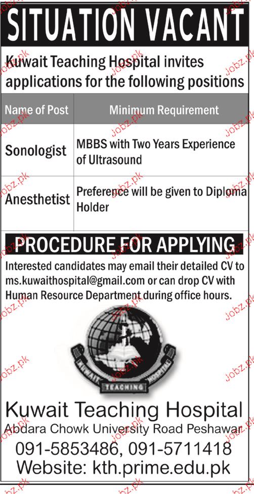 Apply as per details in job advertisement. Login to view further details of how to apply via https://www.jobz.pk online.