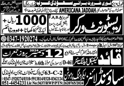 Apply at Sound Lines Recruiting Promotion latest Overseas jobs in Hotel and departments before closing date which is around December 12, 2024 or as per closing date in newspaper ad. Read complete ad online to know how to apply on latest Sound Lines Recruiting Promotion job opportunities. On job medical, accommodation and transport facility is provided.