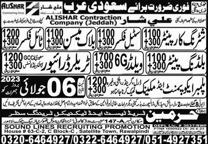 Sound Lines Recruiting Promotion is looking for candidates for following posts as per job advertisement published in daily Express Newspaper of July 4, 2023 for location Riyadh, riyadh Saudi Arabia: